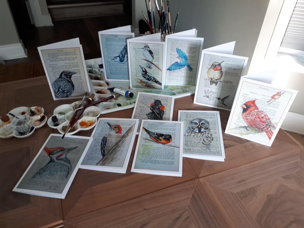 Blank greeting cards feature a variety of my watercolours on Bird Guide pages. To inquire about wholesale pricing or to place an order, please use the ‘Contact me’ form.